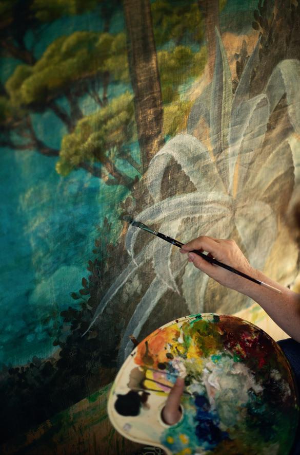 Anne-Violaine Lesaffre est une artiste et une artisane textile, spécialisée dans la peinture en décor. Ses fresques sont des pièces uniques, des paysages féeriques grand format. Grâce à ses expériences professionnelles très différentes, elle innove en créant des décors uniques et audacieux en s’inspirant de la lumière, des couleurs et des parfums de ses voyages.