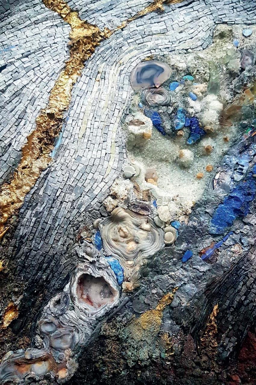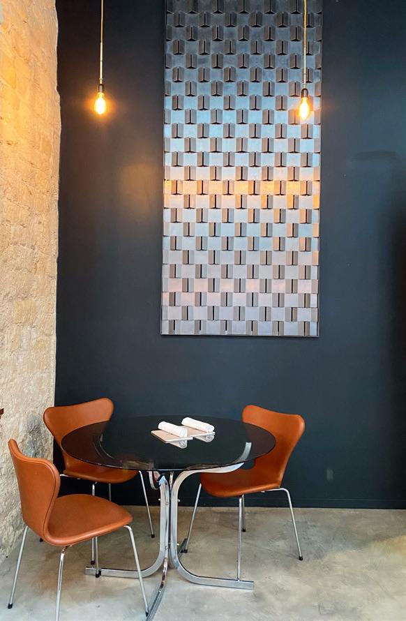 Heliog séduit également l’univers de la décoration d’intérieur. Son métal finement gravé s’appose sur des compositions murales ou des pièces de mobilier uniques réalisées sur mesure.