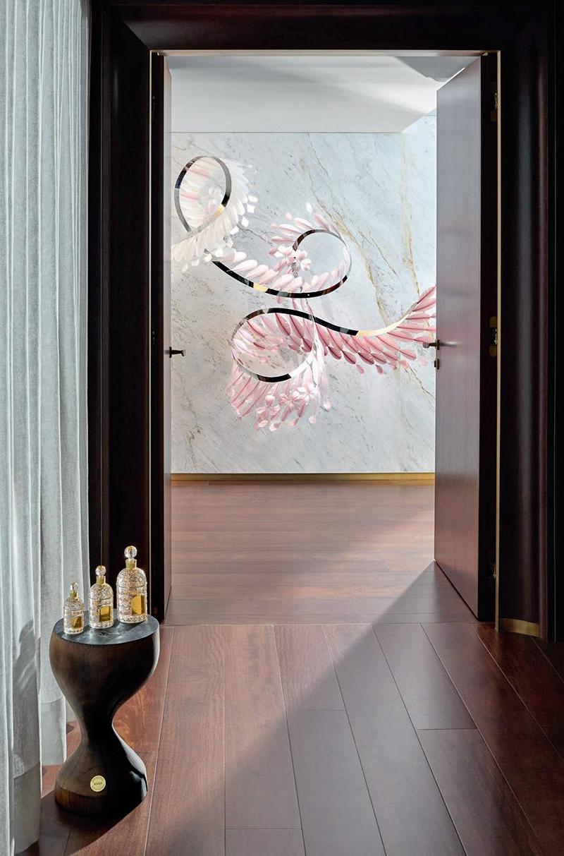 L’Atelier Pictet ouvre une fenêtre de fantaisie dans un matériau réputé invisible et explore le verre de toutes les manières. Leurs décors en verre laissent s’exprimer le talent de la main des graveurs-verriers. Ils rehaussent les murs de boutiques Chanel, habillent les compartiments du nouvel Orient Express, ou le bassin majestueux de la Mamounia à Marrakech.