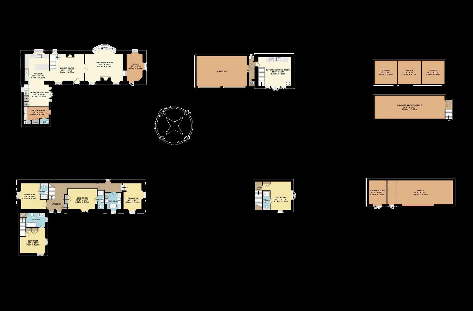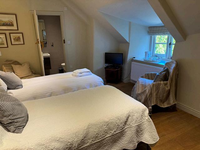 Upstairs are three additional well-proportioned double bedrooms, each with its own en-suite, offering both comfort and privacy The rooms are full of character, with exposed beams and subtle quirks that reflect the farmhouse’s long history. One bedroom is particularly memorable, reached by passing through a dressing area and down a short flight of steps, where the original window has been preserved to frame a view over the pretty courtyard below a timeless feature that connects the room back to the house’s origins