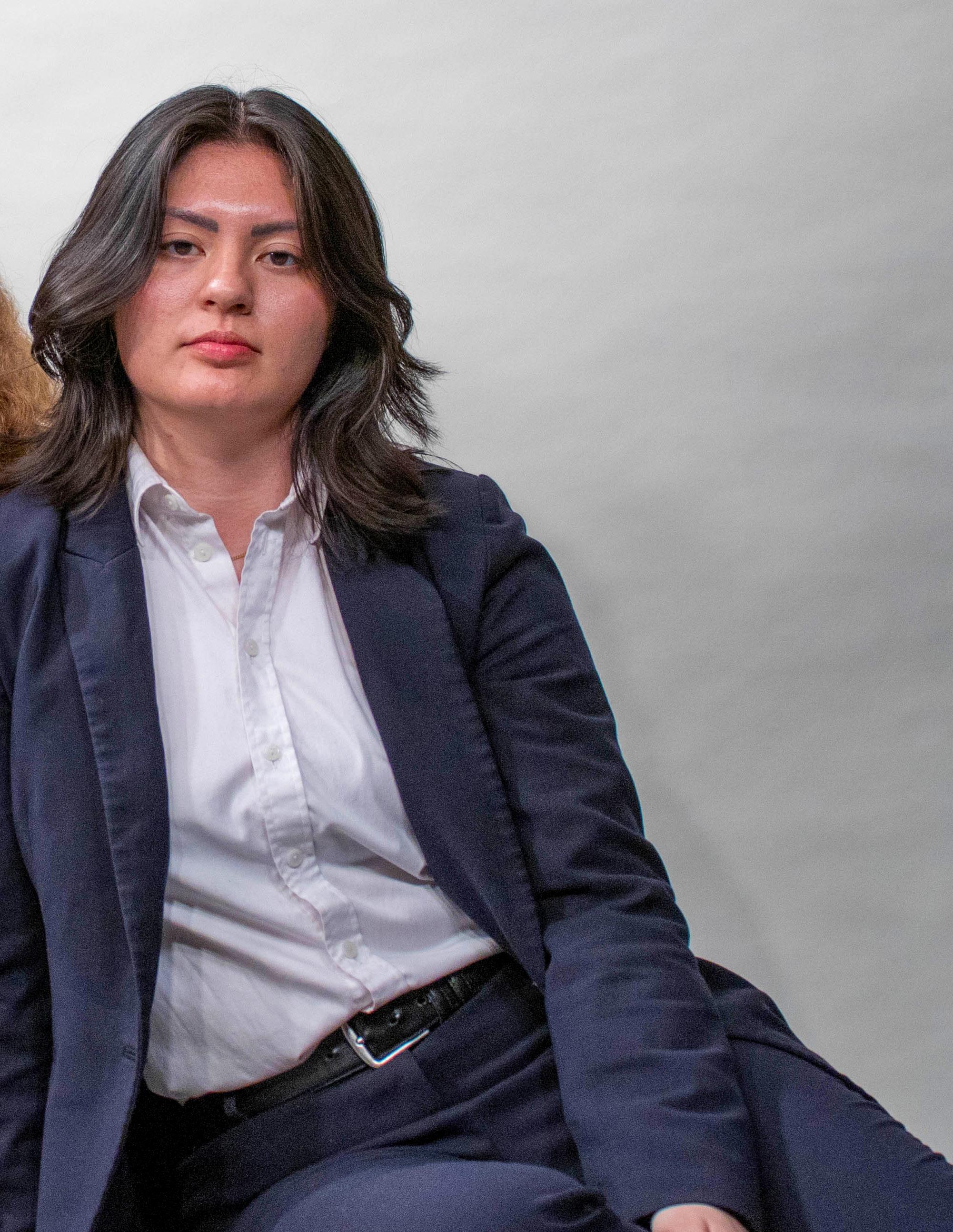 wearing, because we are often in young, female spaces, the judges are older, white men, which is just a different playing field.” She continues, “It’s probably a bleak but good precursor to the professional world.” Isabella Ocava ’25, also a Mock Trial member, echoes Wolfson’s warnings about being a woman in the law field, explaining that to her, maintaining her individuality in the workplace actually means conforming. She explains “The suit is the way to go, it covers my tattoos, and as a woman, it garners me a little bit more respect in the courtroom.”