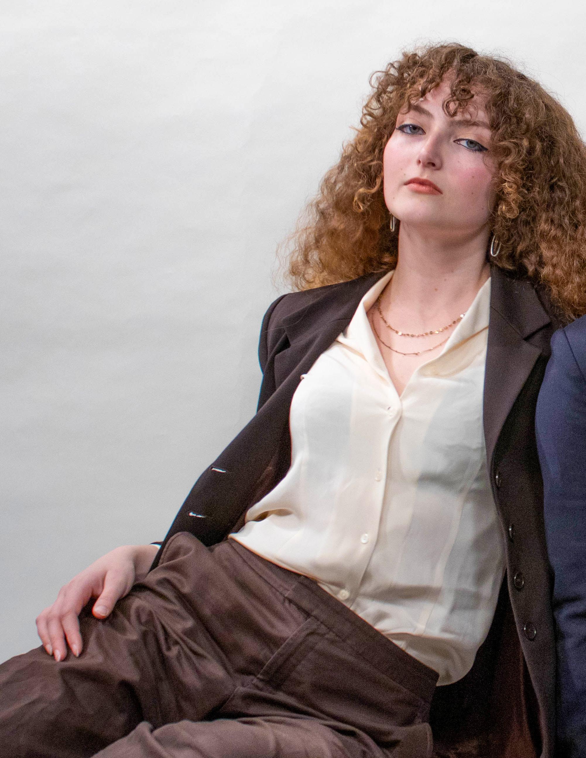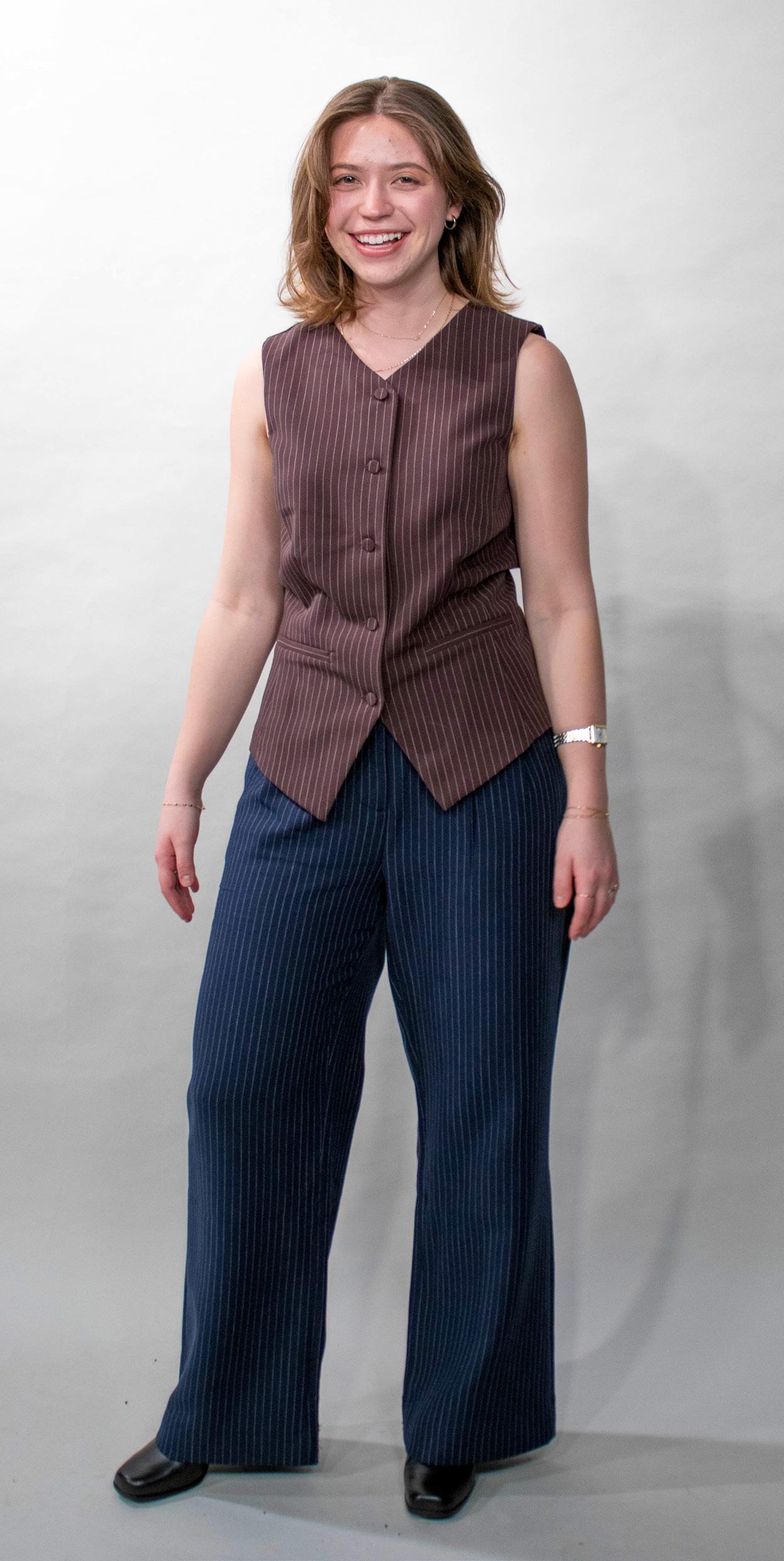 Some models have experience with business professional attire due to their membership in Mock Trial, the College’s organization for students interested in simulating real trials and competing against other organizations across the country. Alexa Wolfson ’26 explains that Mock Trial is a little different from other business professional spheres because their clothes are specifically designed to not be the center of attention. “You’re going to want your words to be the focus, and your performance, your demeanor, as opposed to what you’re