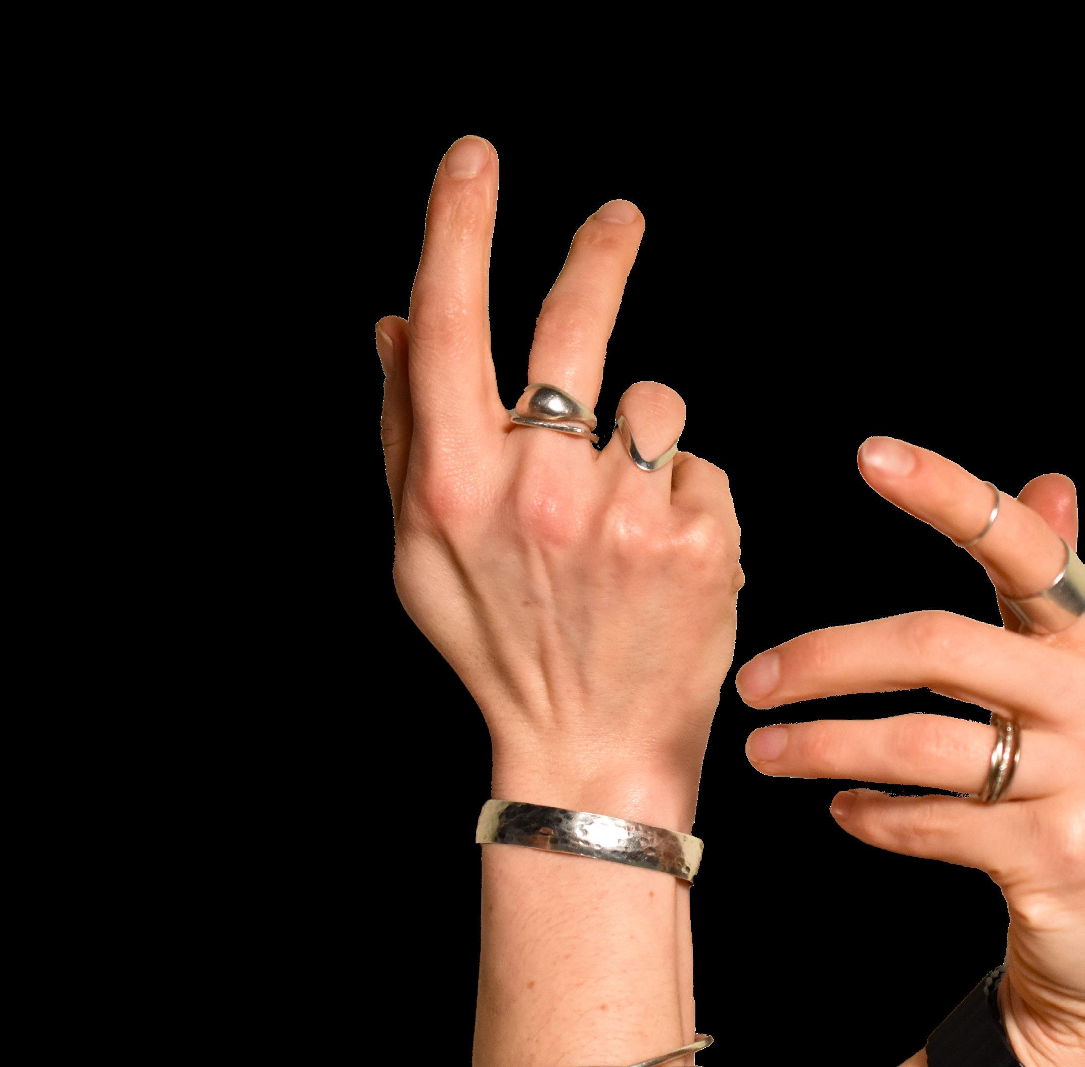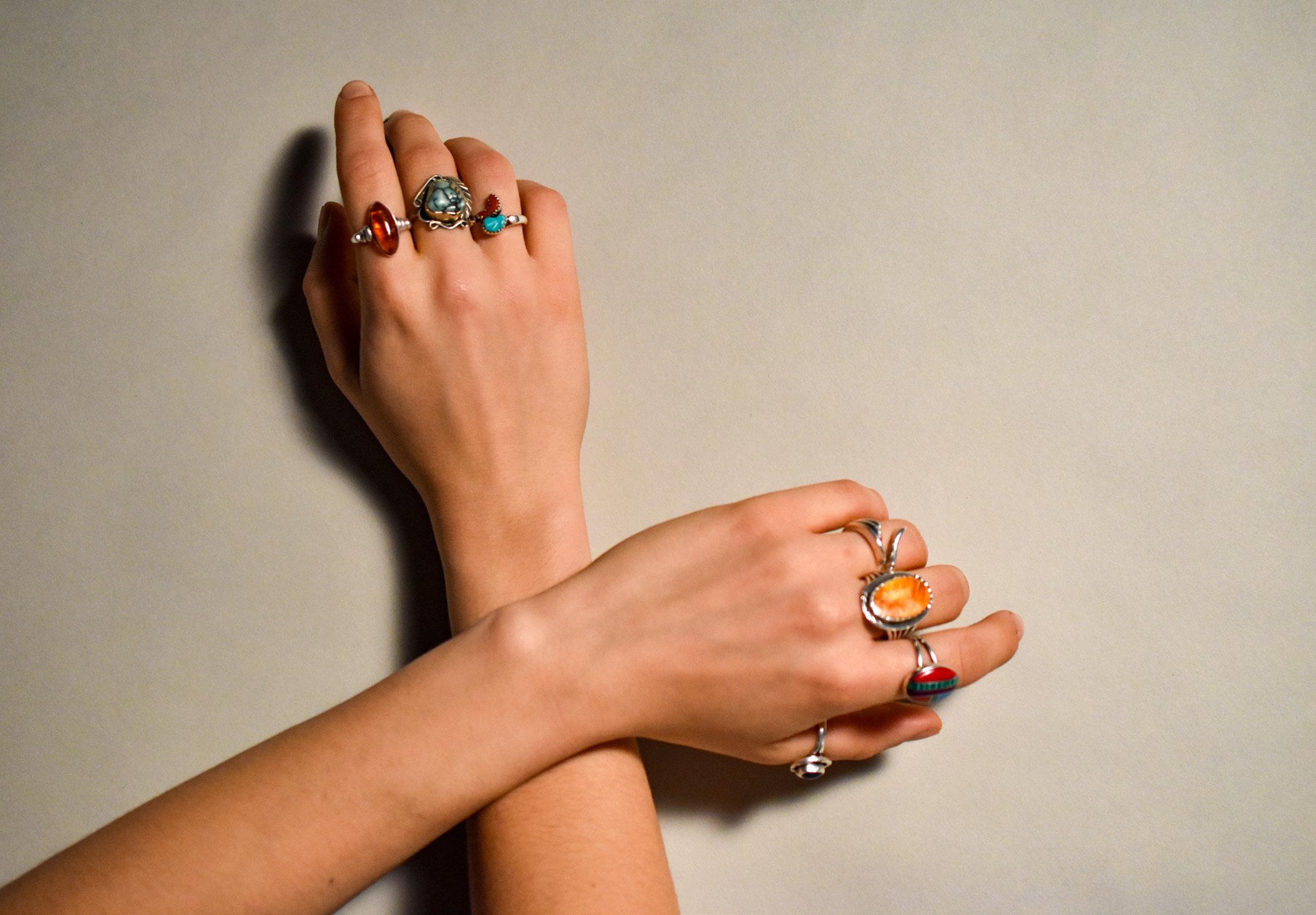 sentiment, and self-expression with her wherever she goes. For research librarian Alex Wohnsen, jewelry is both a constant and an evolution. “I’m wearing one of the very first rings I ever wore, but I wore it on my other hand until I got married. It was my mom’s ring when she was a teenager, and I’ve just added jewelry to it ever since,” Wohnsen explained. Some pieces never leave her body, as “most of this I wear even while sleeping and showering,” while others have come and gone. For example, “It has ebbed and flowed over the years. I used to have a big bangle, but I stopped wearing it.” For Wohnsen, jewelry is adaptable yet enduring. “I’ve always felt that jewelry is distinctive but can exist with everything else,” she said, emphasizing how seamlessly it had become part of her daily life.