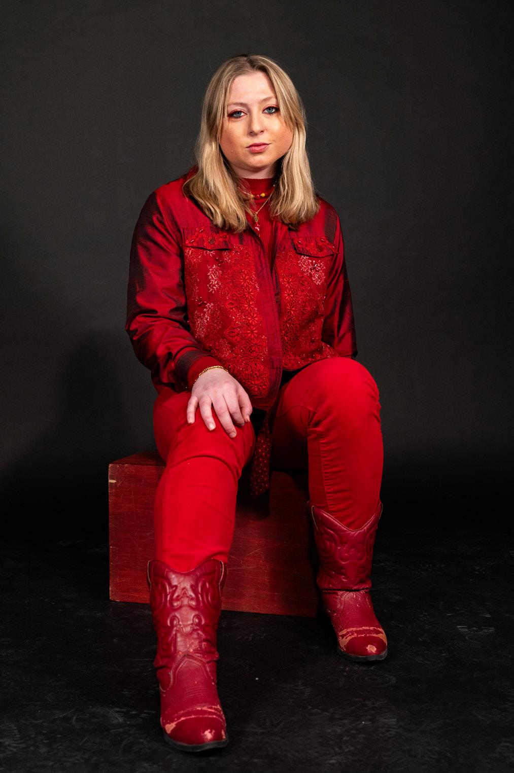 While there is essentially no basis that supports the idea that certain colors are better for certain complexions, many people gain confidence from these sessions, which is likely why the trend is growing. Also, a big reason in favor of monochrome outfits is that they allow individuals to experiment with different textures and patterns. Emma DiGiacomo sports an all red look and makes it interesting with cowboy boots, a textured jacket, and a patterned scarf woven through her belt loops.