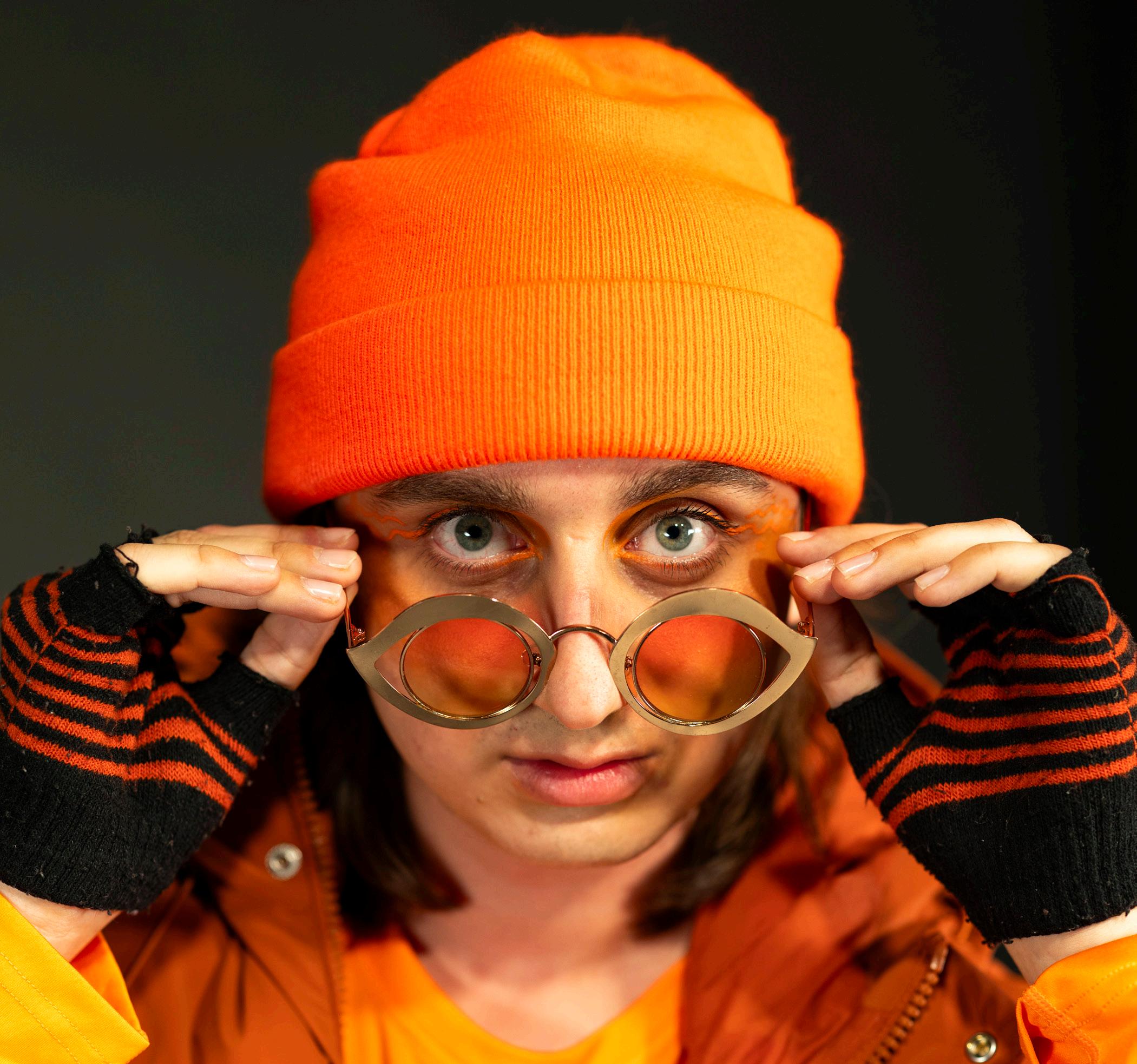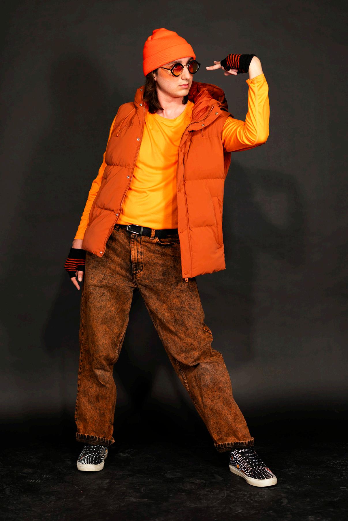 Back to the Future II with its flying cars and self-tying laces was a vision of 2015 that did not come to fruition, but is idealized by modern viewers for its nostalgic style. Alya MacDonald ’25 represents retrofuturism through a vintage, babydoll dress. Green pops of color appear throughout the outfit, from MacDonald’s hoop earrings, eyeshadow, and accents in the dress. MacDonald’s hair is left loose to fall in natural waves, expressing the freedom and fun that retrofuturism envisioned. Contrasting the flowing silhouette of the outfit are dark, thick boots that reflect the contradictory nature of retrofuturism as going back in time, but in the name of the future.