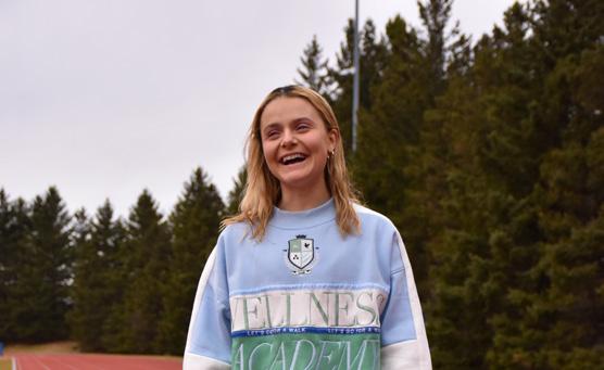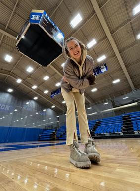 Lacrosse has shaped Maeve’s identity and personal style. Maeve flaunts a sleek black base layer, a cropped olive green vest (her favorite color), and Karhu sneakers in her athleisure look. While she sports a dynamic style off the field, Maeve will opt for athleisure during her post-workout errands. Although she prefers fitted and cropped athleisure, she wears all her gameday attire oversized and pulls her hair into a low pony under her goalie helmet. Even in uniform, Maeve finds ways to make it personal to her. She wears all-white gear, from her turf shoes to her gloves, and on her stick is a butterfly symbolizing Morgan’s Message, a mental health awareness initiative for athletes. Before games, Maeve always eats a peanut butter and jelly sandwich to fuel her body. Since she was little, she and her dad would grab ice cream after her games, and the tradition continues when he comes to her college games. Lacrosse has taught Maeve to work with many personalities, and she practices perseverance on and off the field.