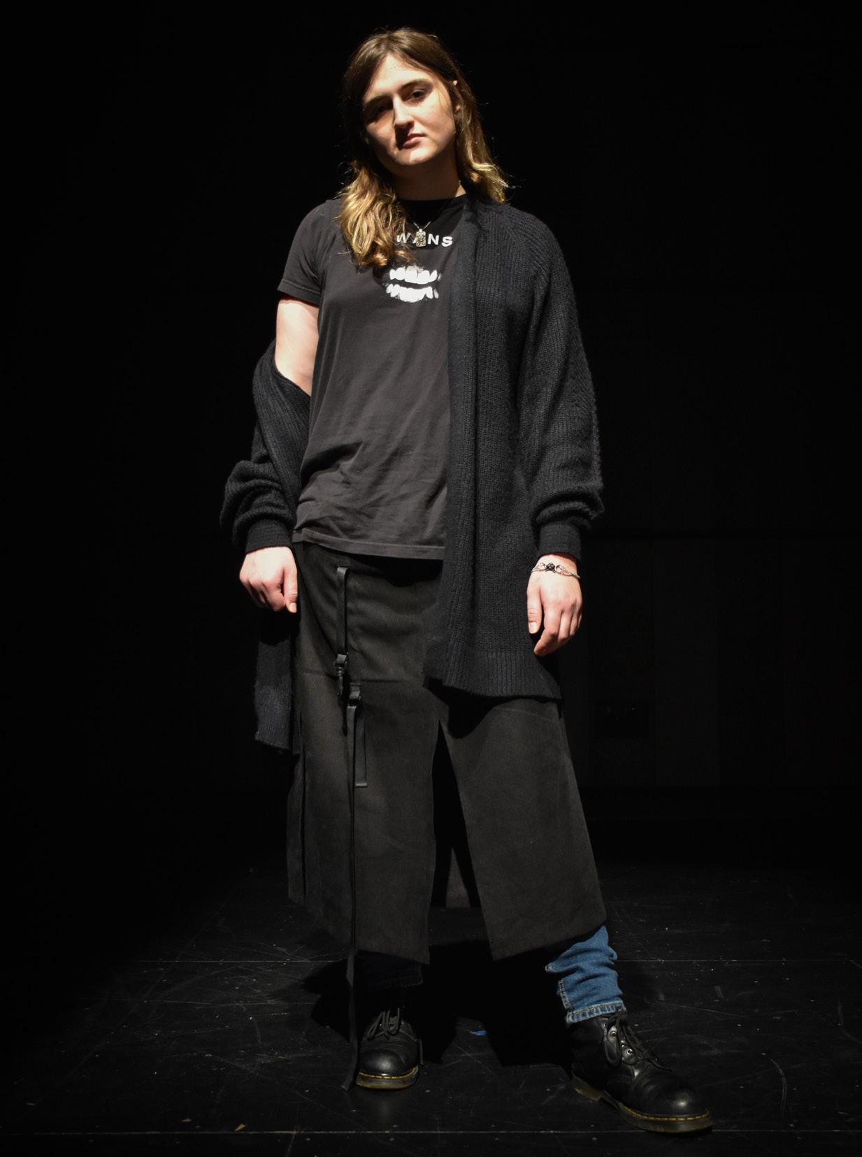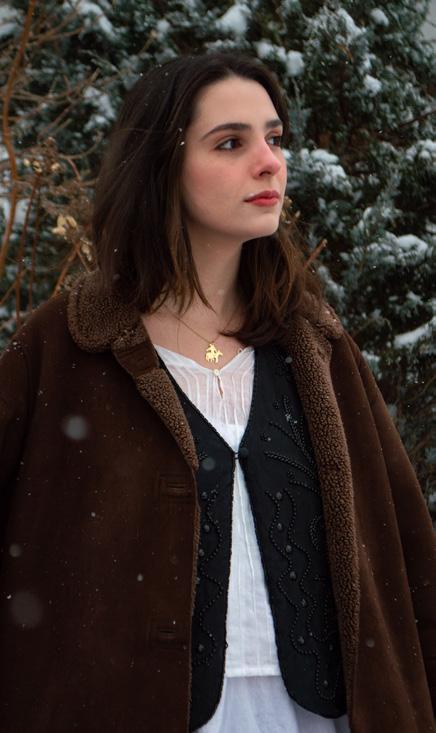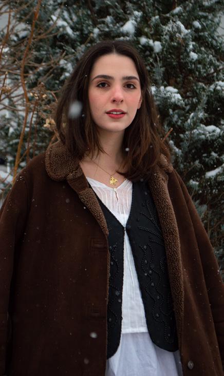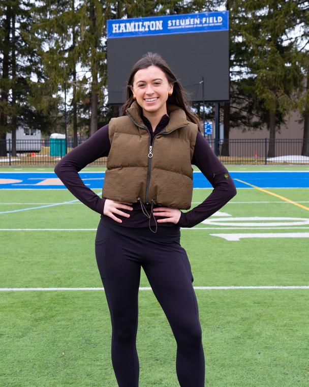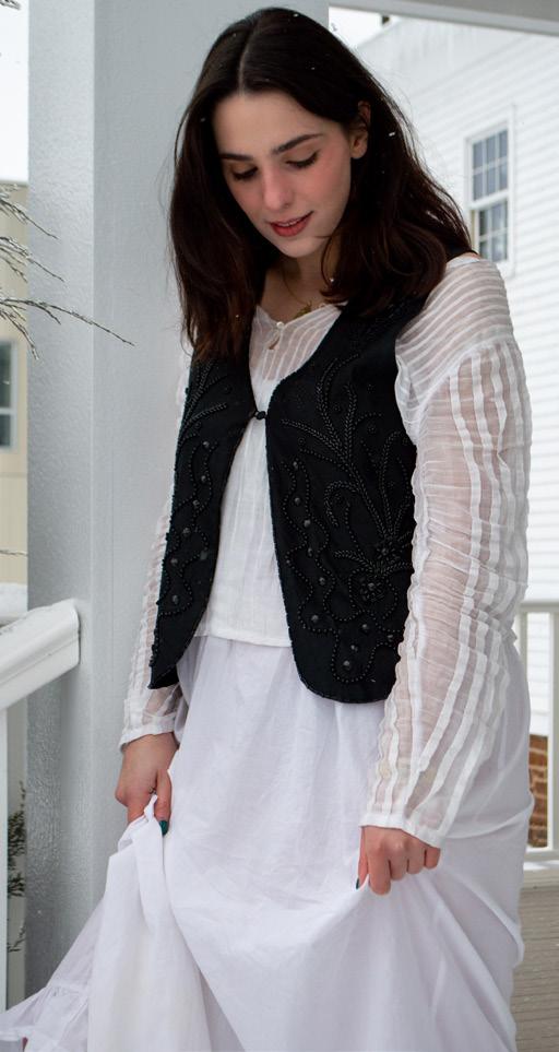 As technology becomes a more integral part of life, the rise of an attention economy becomes imminent. In this attention economy, it is not enough to look prettyone has to look interesting, or even shocking, to move into and secure a place in the spotlight. Fashion labels feel the mounting pressure to remain relevant. Many labels such as Balenciaga and Dilara Findikoglu have leaned into the more provocative elements of fashion, replacing delicate and appealing looks on the runway with ensembles that shock the public. Brands such as these have gained attention by going against the historically rigid standards in the fashion world. Instead of sending their models down the classic catwalk, Balenciaga’s SS23 Ready-toWear models trudged through a muddy set to display each look. Dilara Findikoglu traded a typical leather or silk material for human hair, the main component of multiple looks in their SS23 Ready-to-Wear show. Hamilton students may not have access to a bog or copious amounts of hair, but they still know how to surprise an audience by bending fashion norms. For this shoot, stylists were instructed to dress their assigned models to represent the concept of a “fashion faux pas.” Each look was carefully constructed to go against the carefully maintained fashion “rules” we are expected to adhere to and prove they have no real merit.