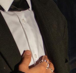 and runway fashion trends are moving toward. Canadian tuxedos constitute another unlikely pairing: denim on denim. Outfits of this kind have been pervasive through popular culture from the 1990s to the present but have mainly been worn to attract attention because they are traditionally considered unattractive. Justin Timberlake’s all-denim onslaught stunned viewers of the 2001 American Music Awards. His mixture of different types of denim and a cowboy hat created a shock factor that still is referenced today. However, 20 years later, fashion aficionados have finally come around to appreciate the integrity of an all-denim ensemble. The Diesel label is leading the charge in this appreciation through a newfound rise to fame due to a rebranding effort led by creative director Glenn Martins that has refocused the brand completely on denim. Most of the looks Diesel has sent down the runway in the past three years have been composed solely of denim. This trend has trickled down the fashion pipeline from the runway to celebrity fashion to streetwear. Flip back to page 3 to see the Eboard wearing the Canadian tuxedo style! Our models took on the challenge of making fashion faux pas appear dignified and attractive. The aforementioned brands have proven to the public that embracing this challenge is a route to success. Both individuals and brands embracing non-traditional styles are revolutionizing the fashion world. We will continue to see this trend increase in popularity as we become more dependent on attention as a form of social currency.