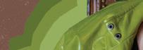 Isis is styled in a silk scarf gifted from her mother. Made up of a collection of vivid yellow, purple, and pink patches with an embroidered flower pattern, the scarf makes a bold impression. As Isis explained, the scarf was gifted as a going away gift by her mother, who has a matching one with complementary colors. Her mother describes the scarf’s patterns as a representation of Isis’ bright and vibrant energy. Often worn to complete a look for a dinner with friends, a theater excursion, or to other fancier occasions. Isis styles the scarf to match every event. Patrick wears a bright yellow jacket, which he bought second-hand when he visited his friend in Stockholm while studying abroad. He was initially drawn to the jacket’s color, and only afterward did he realize it could also be converted into a vest. Patrick explained that the garment has lots of buttons, large pockets and can be styled in many different ways. He also realized a week after he got it that it had a hidden hood, which thus characterized this piece as the “gift that keeps on giving.” Patrick also chose to sport an alien bucket hat, which he bought second-hand in New York City. He recalls originally buying it for a friend as he was throwing a “Cowboys versus Aliens”-themed party, but decided to keep it for himself after his friend forgot it at his house. He likes this hat because it brings him joy, stating that he thinks aliens are funny.