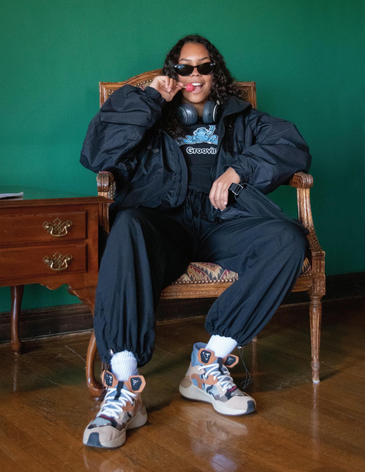 Clothing passed down through generations tends to hold an emotional significance to the wearer. Aiyana chose to model one of her dad’s old jackets from the ‘90s. On a particularly cold day over winter break, Aiyana’s dad offered her his old jacket - and she has put it to good use during chilly periods ever since, mentioning that she wears it almost every day. Aiyana has her parents’ birth years tattooed on her two wrists, and explained that this jacket is another way that she is reminded of her strong connection with her parents. Aiyana added that her dad attended Syracuse University and wore this same jacket during his college years, so the fact that Aiyana is also carrying it with her through her college years makes it extra meaningful to her.