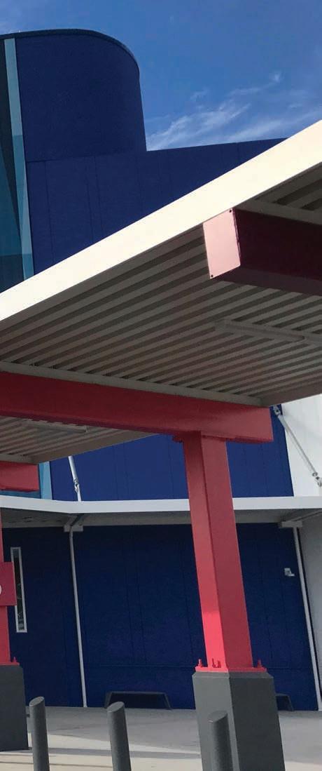 e illuminated cabinet was then slid over the pole and attached to the ten-by-ten-inch steel tube spreader bar that eased the transition from a single pole to a double pole. “ e cabinets mounted well to it,” remarks Wolfe.