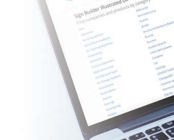 Supplier Spotlight Find the right vendors for your business in the Sign Builder Illustrated Directory. Search for products, research vendors, connect with suppliers and make confident purchasing decisions all in one place. SignBuilderDirectory.com SIGN BUIL DER ILLUSTRATED Get listed in the Directory, visit SignBuilderDirectory.com/AddYourCompany Sign Builder Illustrated Directory is powered by MediaBrains Inc. ©2023.