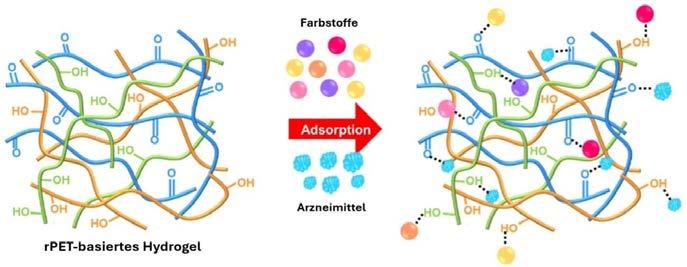 Das Projekt der ZHAW demonstriert die Entwicklung nachhaltiger Hydrogele aus dem chemischen Recycling von PET und biobasiertem PEF zur Abwasserbehandlung.