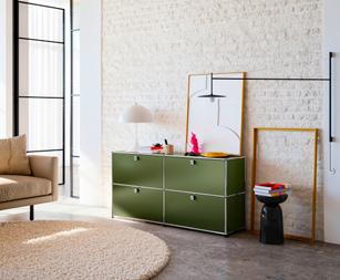 Kombinieren Sie die geometrischen Modulen mit Kwadrato, ein straff konzipiertes Schranksystem mit einer edlen Verarbeitung. Wählen Sie Tür- und Ladefronten, offene Fächer, Bücherregale und mehr in vielen Größen, Farben und Lackverarbeitungen.