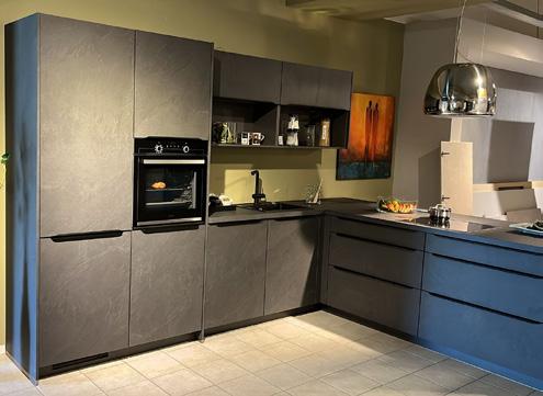 Loungeset met antraciet metalen poten, grijze waterafstotende zit- en rugkussens, teakhouten zijtafels en salontafel. Afhaalprijs: van 2.199,- -20% voor 1.749,-