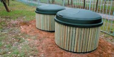 VED Å BENYTTE seg av en stor beholder fremafor mange små, e ektiviseres arbeidet og kostnadene reduseres. Ved at dette graves ned i bakken vil kjernetemperaturen på avfallet senkes – som igjen gir mindre lukt.