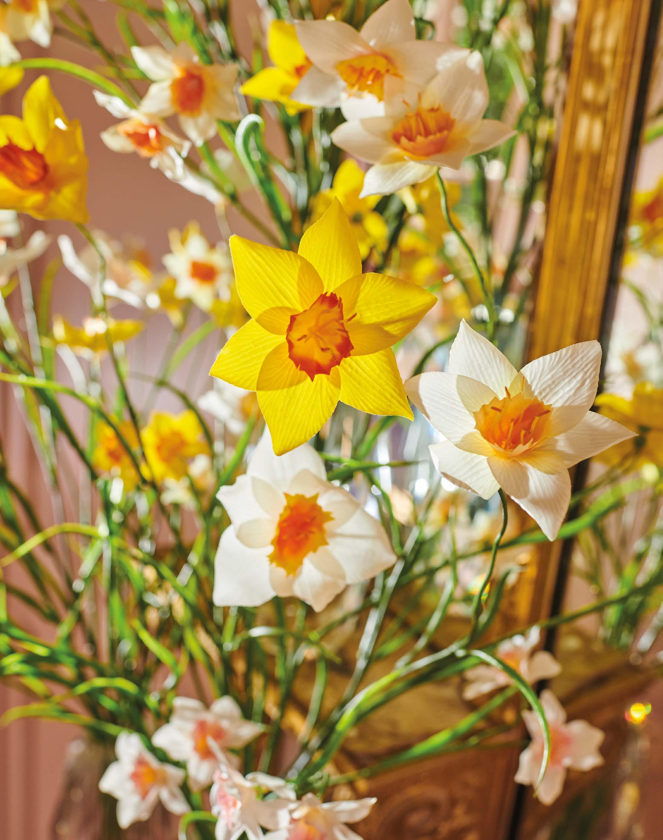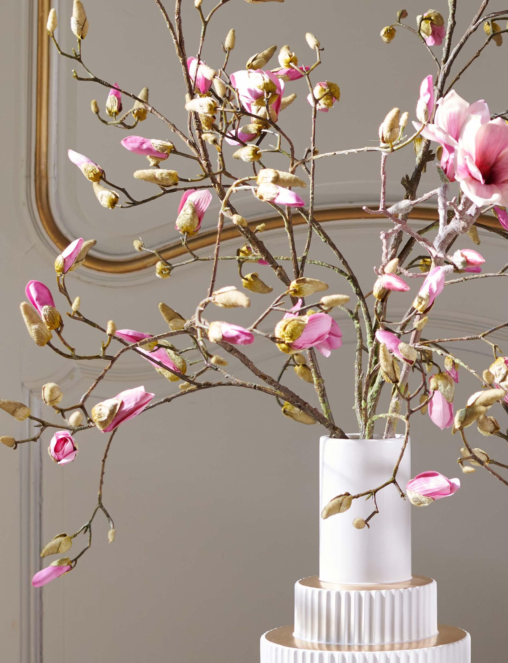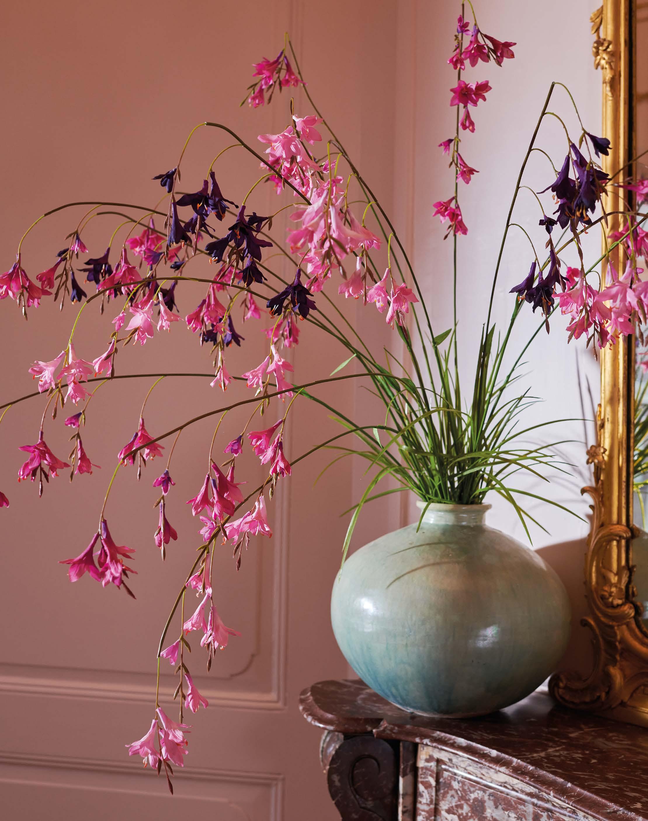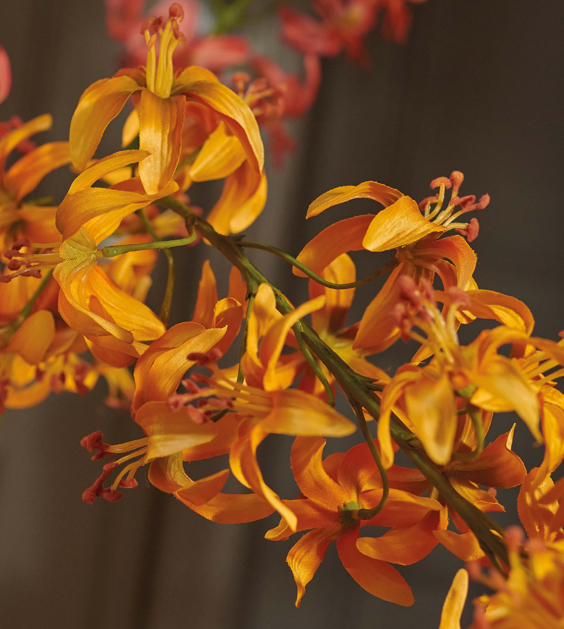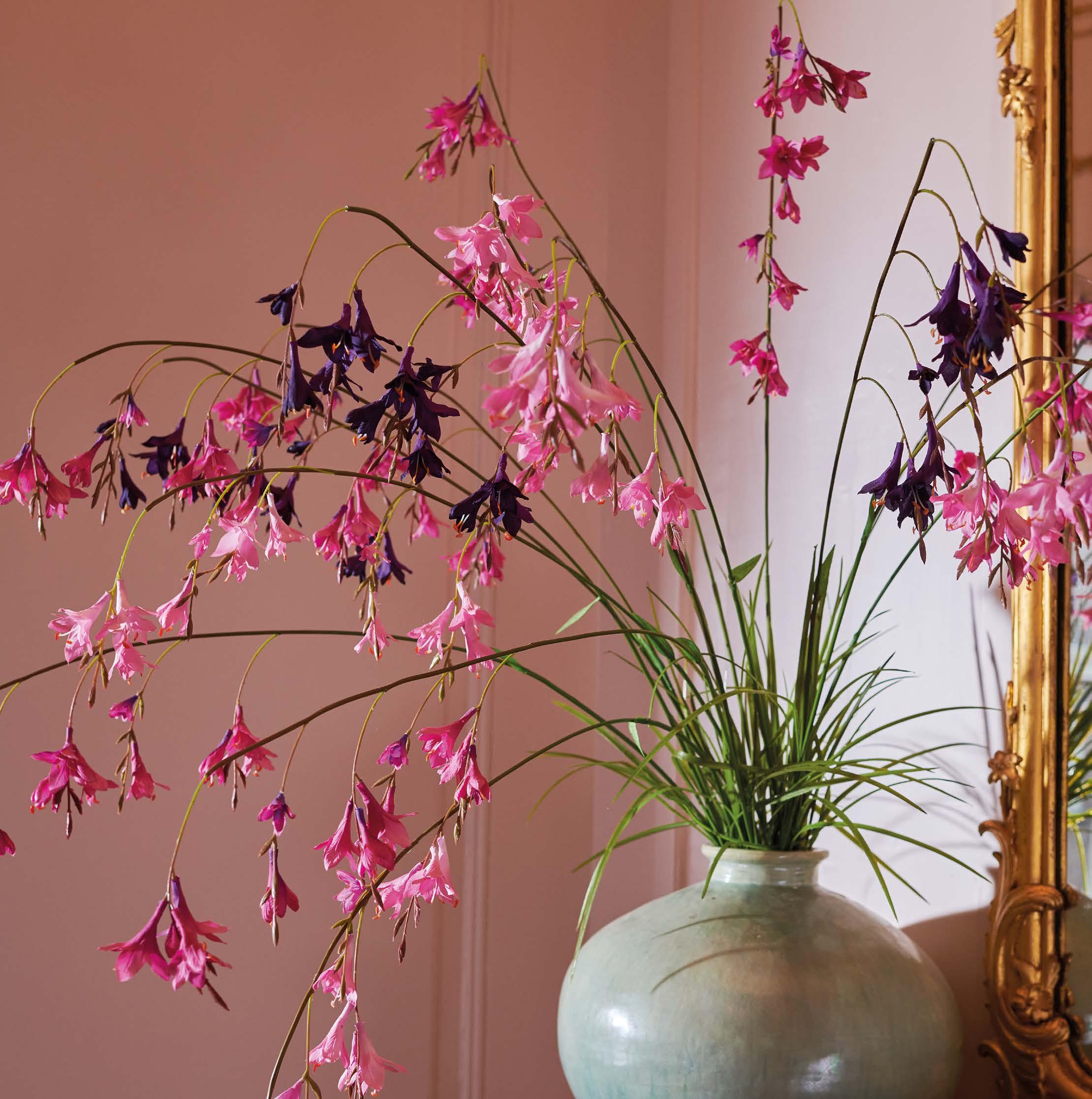 Irises with their slender stems and dramatic flowers, Fritillaria’s hung with bell shaped blooms on their strong stems and the almost geometric branches of the Statice covered in popping neon coloured flower bracts. Lifelike flowers and greenery with a bold personality to discover the limitless possibilities of your creativity.