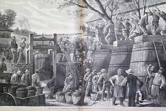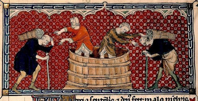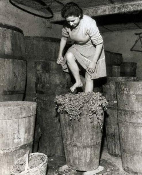 I gamle dage blev pigeage udført ved, at kvinder og mænd trådte op i karret med vin, og med fødderne trampede på druerne.