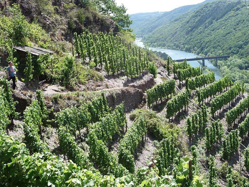 enorme hældning er vindyrkning her kun mulig på bitte små og meget afgrænsede terrasser, og alt arbejde foregår naturligvis ved håndkraft.