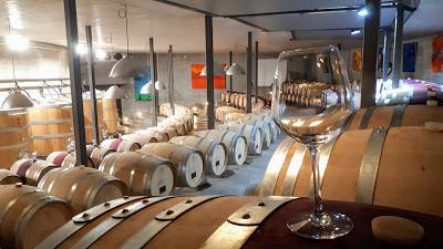 Kælderen med nye og gamle egetønder hos ”Cave la Romaine”.