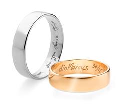 Önskas något annat typsnitt så kan vi troligen hjälpa till med detta. Kursiv stil och skrivstil rekommenderas inte i ringar smalare än 2 mm.
