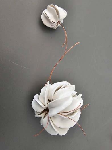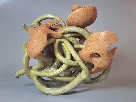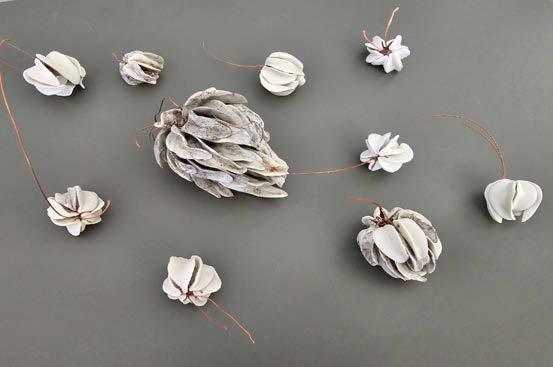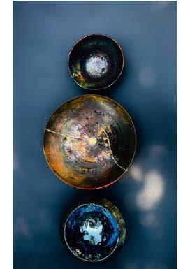 Technique Simplified hand forming and raku technique (with 1,050 °C firing) applied with stainless-steel.