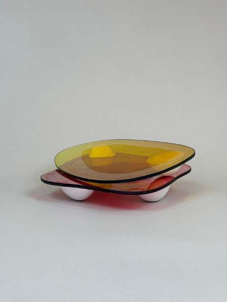 Technique : Soda-lime window Glass and Ceramics slap building with Stained Glass. 1250 °c Oxidation
