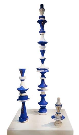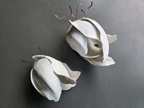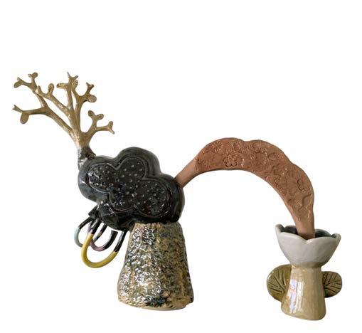 The artworks uses wheel throwing and hand-building techniques, resulting in refined shapes and unique characteristics.
