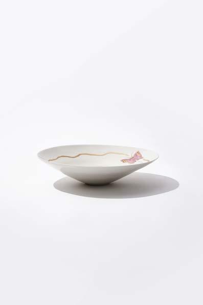 It sought to achieve a harmony of pink butterflies and white. It was expressed in elaborate bowl shapes using white porcelain clay.
