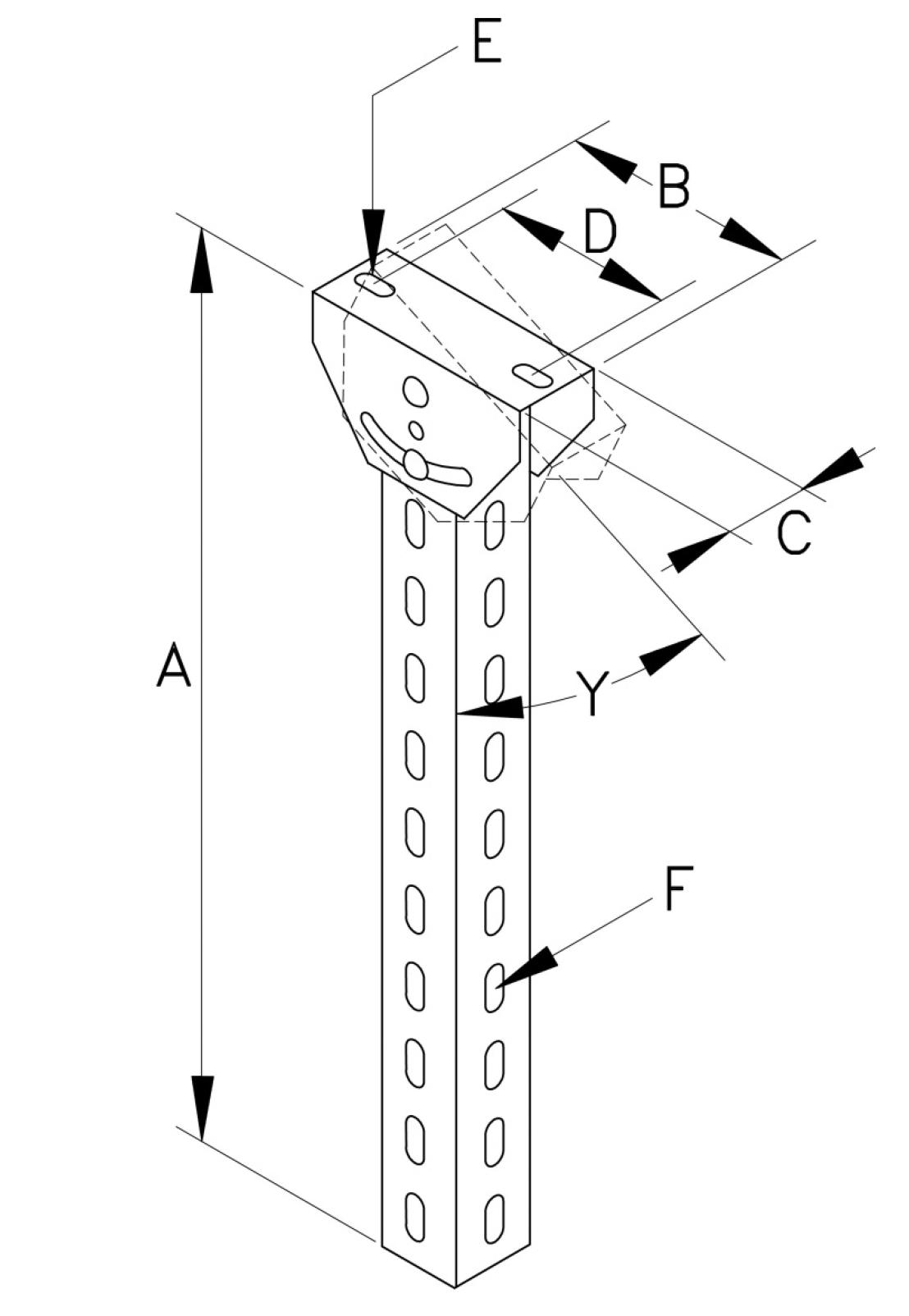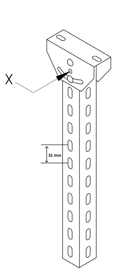 SILTEC loftpendel type S71 kan forsynes med loftpendelforlænger på 1000 mm Herefter øges A-målet til 1450 mm Topflangen kan vippes 45o fra side til side = Y Vippefunktionen kan fastspændes med bolt Såfremt bolten monteres i pos X er topflange og pendel låst fast i 90o