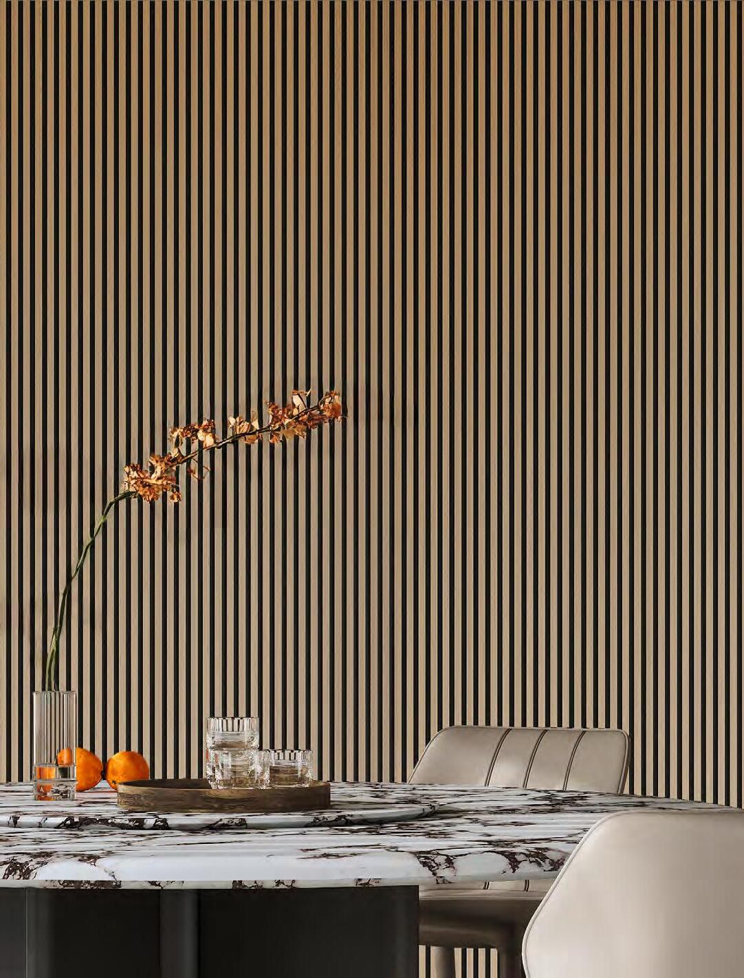 Die «Espada Akustik Design» Paneelen verleihen allen Räumen eine akustische und ästhetische Raffinesse. Die perfekte Symbiose aus Schönheit und Funktionalität für die besonderen vier Wände. Neben der Geräuschreduktion wird zugleich eine harmonische Atmosphäre geschaffen – aus hochwertigen Materialien gefertigt und in sieben verschiedenen Dessins erhältlich, sind diese zeitlosen und modernen Paneelen die ideale Lösung für alle akustischen und Dessinativen Bedürfnisse.