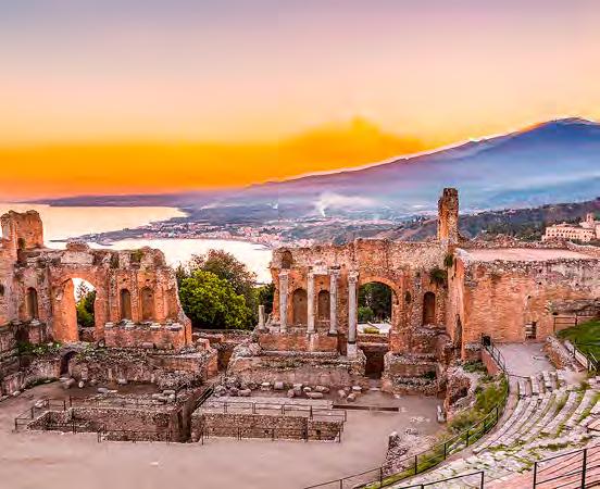 Catanias streichen, erklang einst die Melodie des römischen Theaters. Während man zu dem Schauspiel am Himmel noch einmal in sich geht, kann man den Tag inmitten von Kultur genussvoll ausklingen lassen.