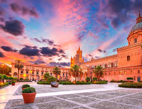 In Palermo verwandelt sich der Sonnenuntergang über der Kathedrale zu einem faszinierenden Anblick. Diese warme Atmosphäre ist wie eine harmonische Musik, die in der Luft mitschwingt.