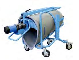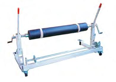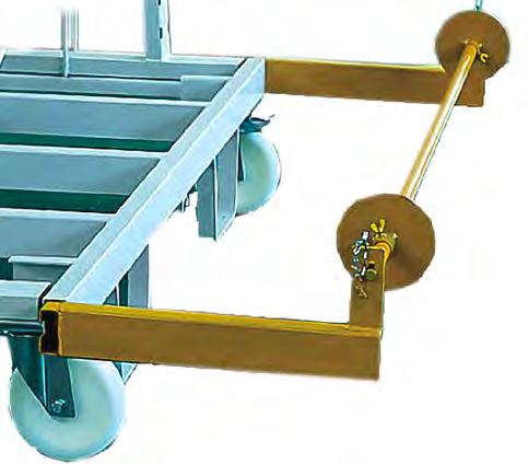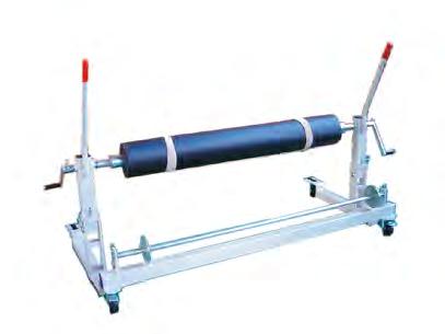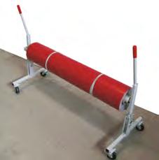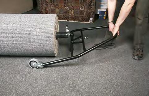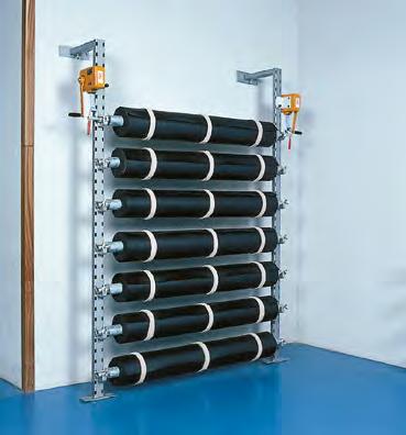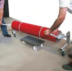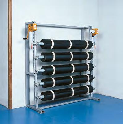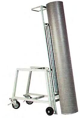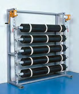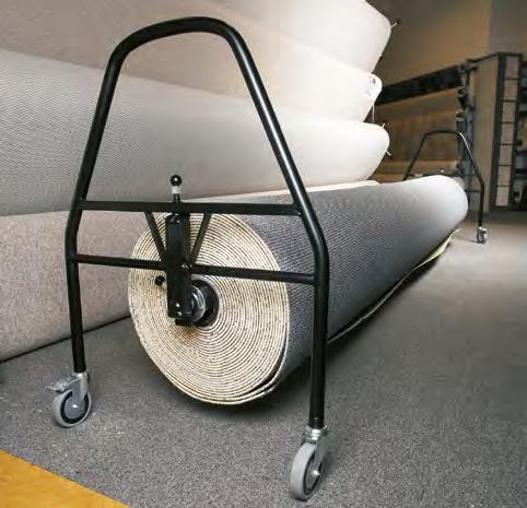 Mit dem Aufsatzpaar und dem Rollenaufzug können Bodenbelagsrollen bis in die oberste Position der Rollenständer eingehängt werden.