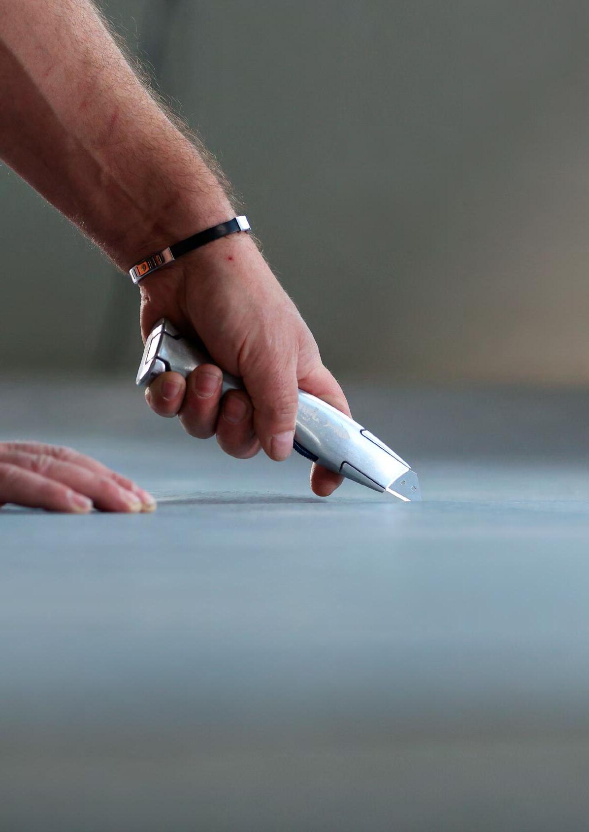 Klebeband-Abrollgerät DF Für doppelseitiges Klebeband Zum Befestigen der Sportbodenbahnen von unten.