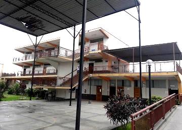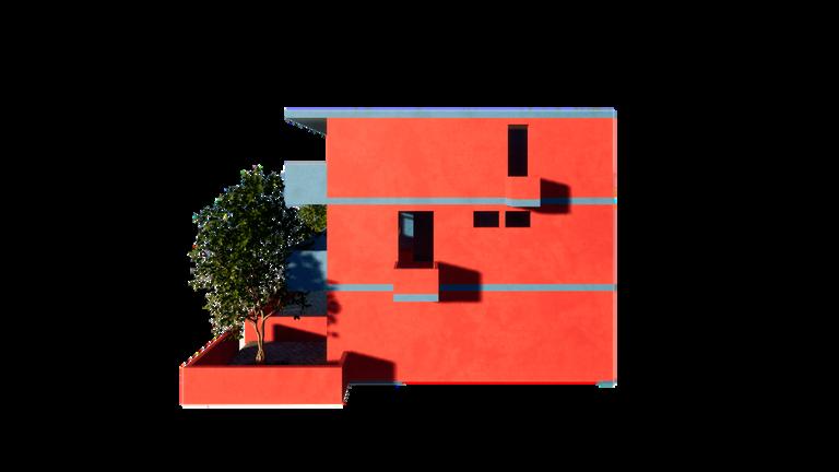 La fachada principal presenta mayor jerarquía y tamaño ya que es compuesta por 2 pisos, con un diseño simple.