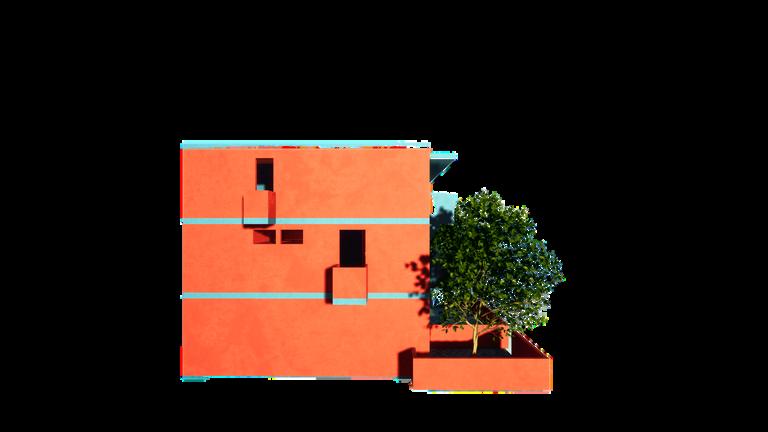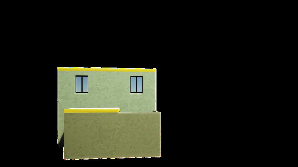 composición 3 bloques, 2 bloques bases a los lados y medio bloque base en medio/planta libre