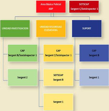 Subteniente Comandante de Puesto Estas unidades pueden incluso estar situadas en localidad distinta a la sede de la ABP en cuyo caso hablamos de Comisarías de Distrito (CD) y en ambos casos siempre tienen un Sotscap (Segundo Jefe) y varios Sergent 1 como jefes de turno, con lo que esto significa en cuanto a conciliación de la vida laboral y familiar y disponibilidad.