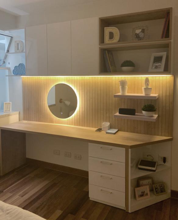 The project consisted of the remodeling a bedroom for a newborn baby. A large closet was placed, shaped shelves of “tic-tac-toe” to give dynamism to the room, and a changing table was also designed. For the design, an atmosphere that transmits tranquility for the baby, using materials such as wood and neutral colors. A one meter baseboard was placed, in order to keep the space warm, and also a decorative paper with figures.