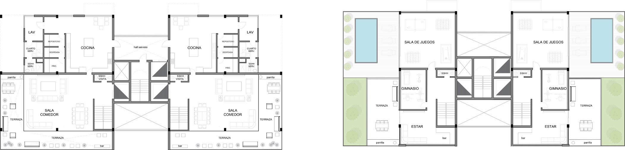The project started from the investigation of the district of Callao. Based on that, the most vulnerable area and with great architectural potential was not currently being taken advantage of. In this case, the area near to the “barracones” of Callao, near the “Complex Real Felipe” was chosen. We worked in groups and proposed various equipment for this project to work in it’s totally. In this way, it was revalued the area generating a new focus in the city, creating investments and promoting the sale of new lots. This housing project consists of a set of apartment towers ranging from 250 to 400 m2, distributed in flats, duplexes and triplex. A landscape design was also proposed for the interior/ exterior of the terrain.