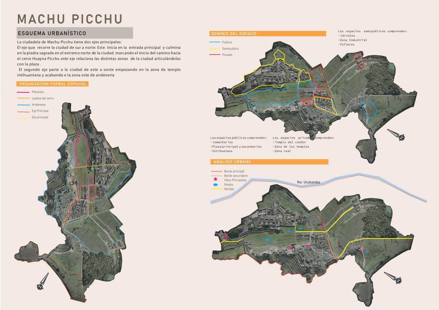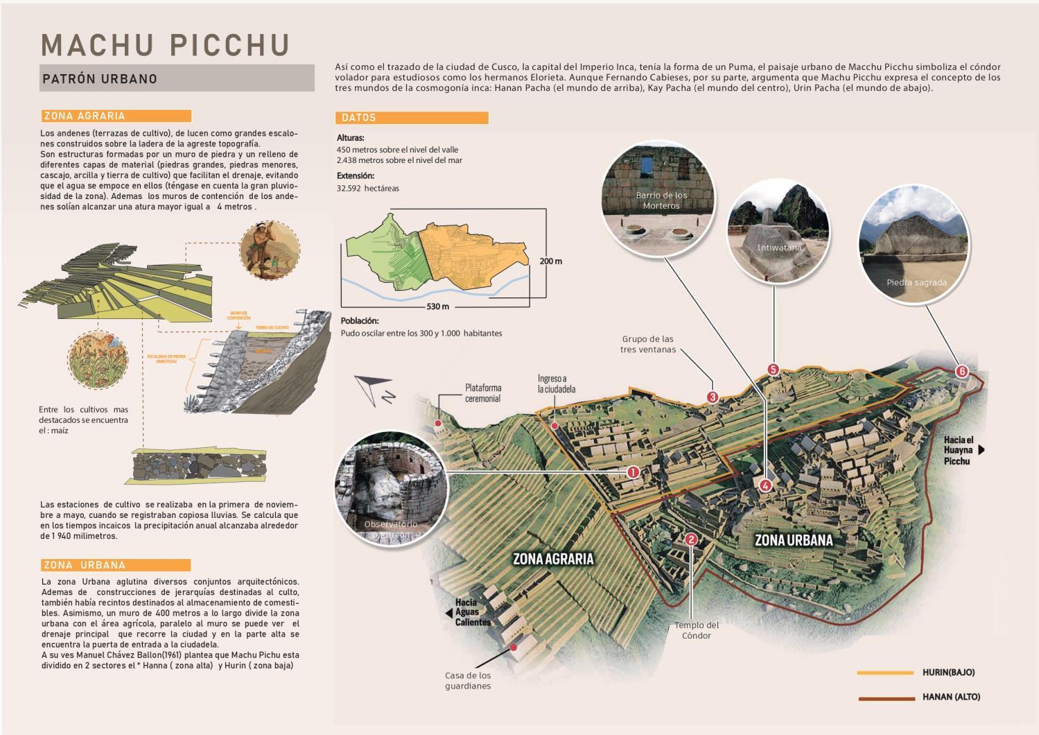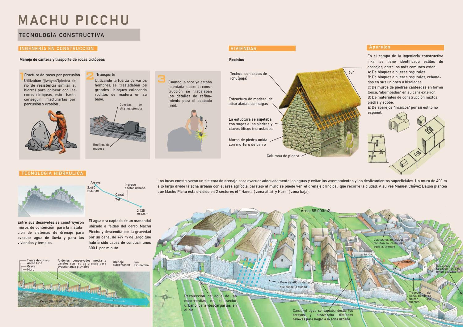 En el siguiente trabajo se realizaron infografías a cerca de Machu Picchu en donde indica un análisis del territorio y paisaje, esquema urbanístico, edificios que componen el conjunto y la tecnología constructiva empleada, además de sus textos referenciales.