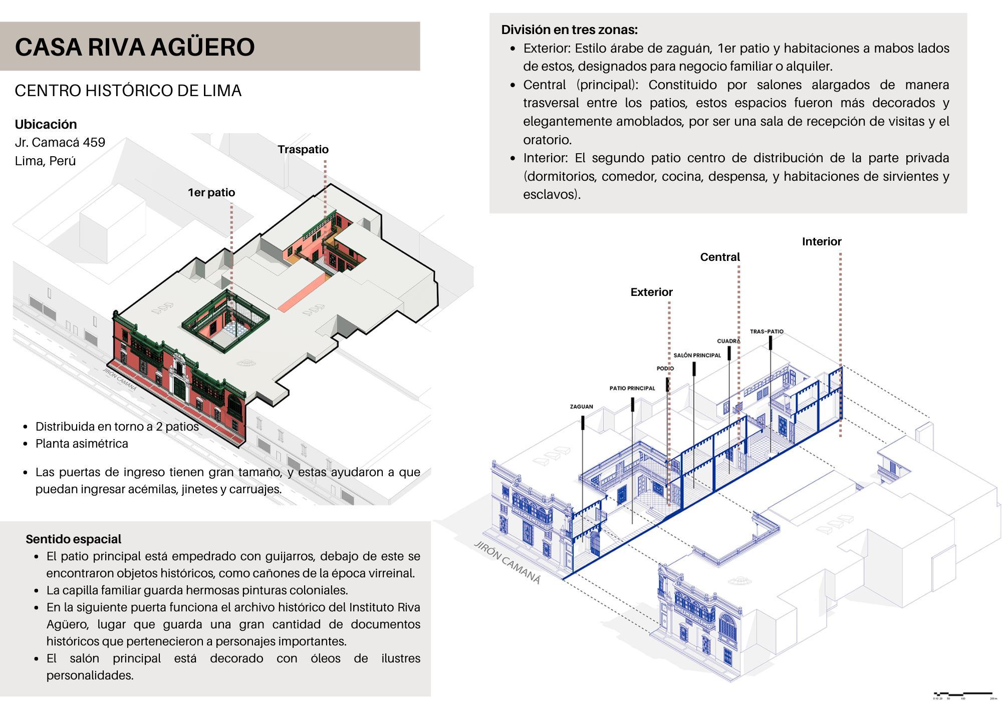 Realizar un análisis sobre la casa Riva agüero ubicada en Jr Camacá en Lima Donde se explique sus características, su sistema constructivo y su análisis funcional.