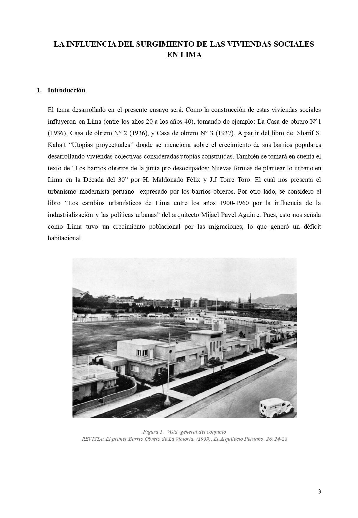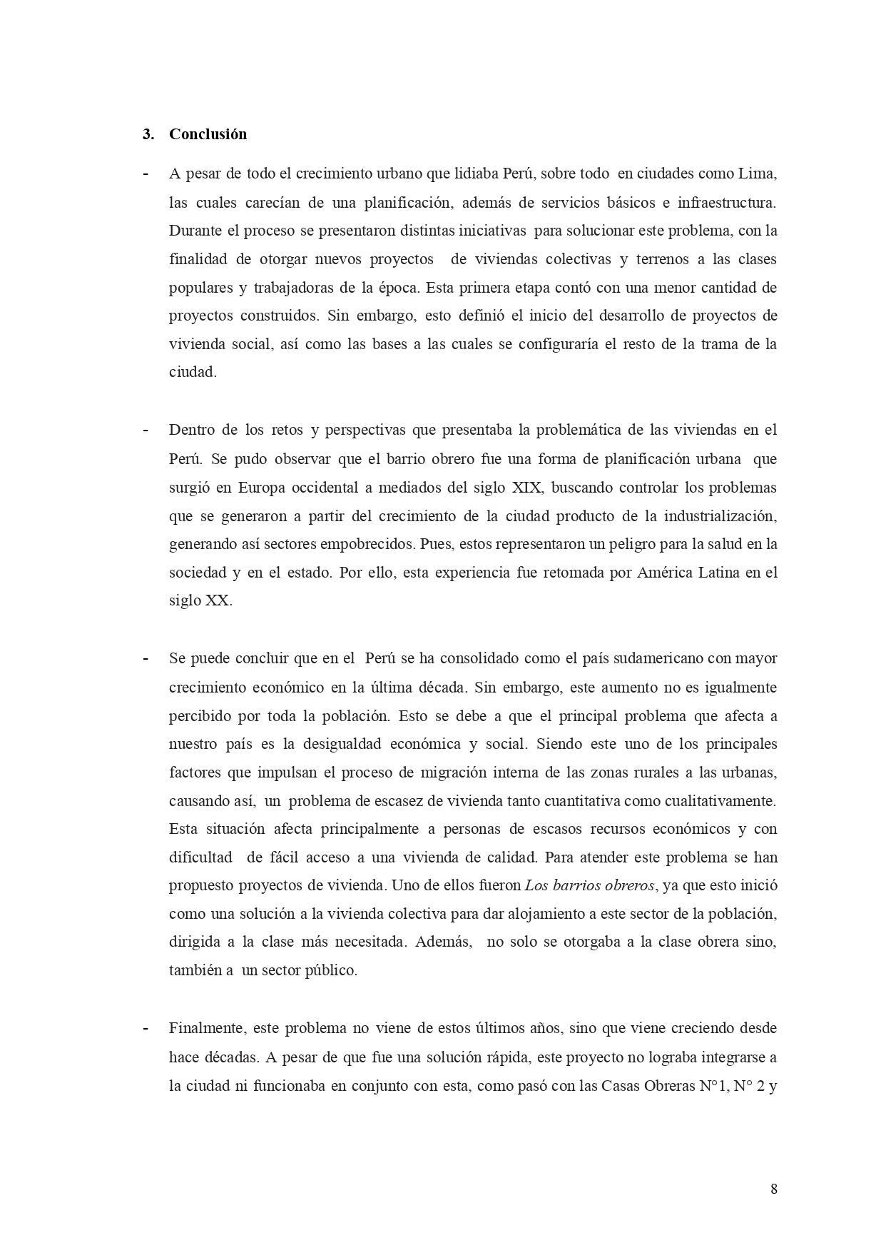 En este trabajo aprendí que estas viviendas o barrios obreros fueron construidos en el gobierno de Oscar Benavides en la década de 1930, debido a la escasez de viviendas para los obreros. Adicionando que la pobreza había incrementado por la migración de personas y la industrialización que esta traía.