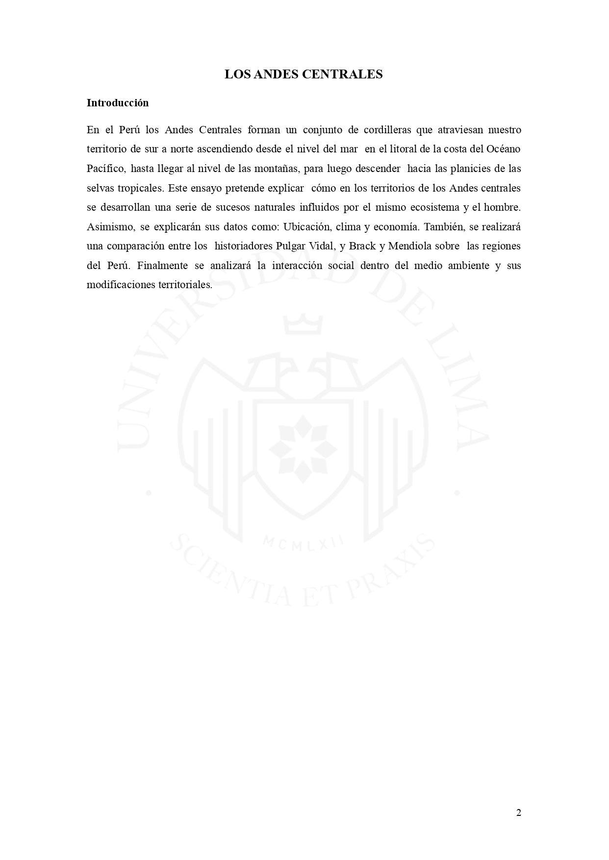 El en siguiente trabajo se realizó un ensayo sobre los andes centrales Primero se deberá leer la lectura “Ciudad y territorio de los andes” de José Canziani de la página 20 a la página 28.