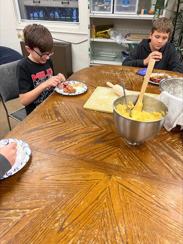 Our most esteemed guest, The Chef Tony came to teach the teens how to make, one of my personal favorites, Pierogi”s! They are filled dumplings of Polish origin, and are traditionally boiled and often served with butter, onions, and sour cream. We made ours with a side of polish sausages and it was so good! Chef Tony prepped all of the ingredients and of course filled it with cheesy potatoes, because you can never go wrong with cheese. Then the teens, encouraged by sous chef Chet put it all together and they Pierogied to their hearts content!