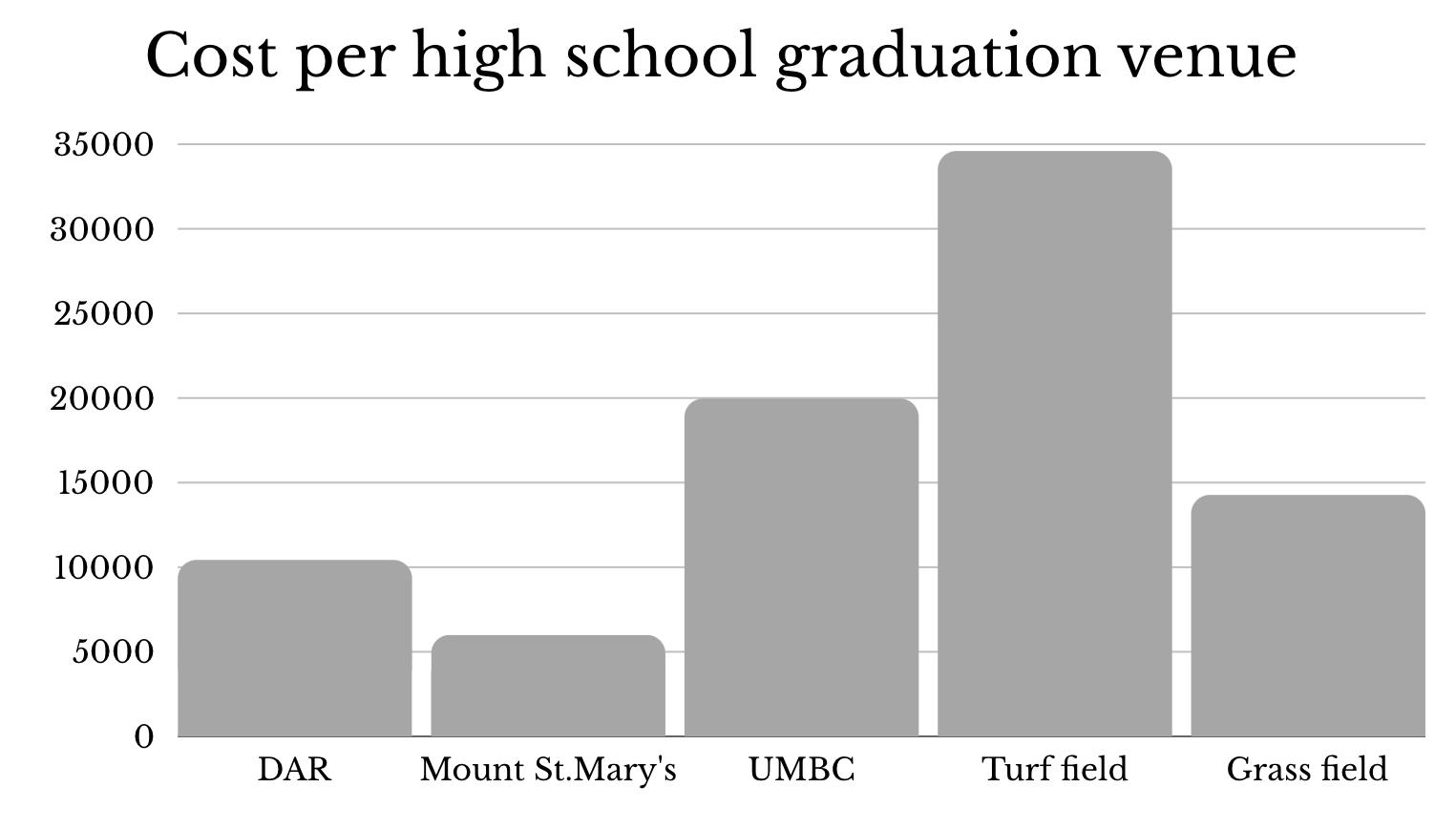 Blair’s total student graduation fee is the highest in the county, only matched by Walt Whitman. The largest contributing cost to this fee is that Blair currently holds its graduation ceremony on Blazer Stadium’s turf field. According to Johnson, Blair students and families would not fit in any of the venues provided by MCPS. “We’re too big for Constitution Hall, [students] would get like two tickets, at [University of Maryland Baltimore Campus (UMBC) students would get] three tickets,” Johnson said. Since 2021, Blair has held graduation outdoors on their turf and has continued to do so. “After COVID, we all did outdoor graduations at all high schools in Montgomery County. But then it worked for us, so we continue to have it outside,” Johnson said. A turf field is the most expensive graduation location in MCPS due to the necessity of turf safe equipment that will not