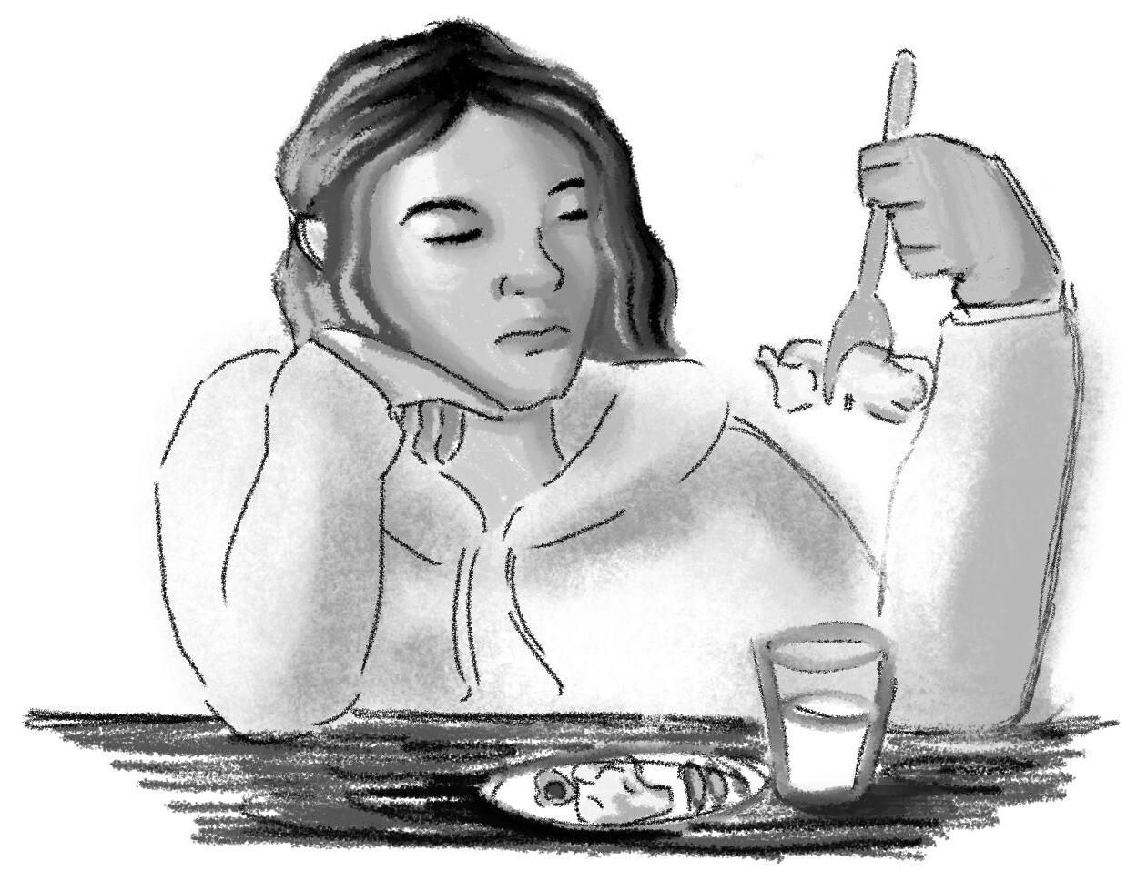 A pounding alarm goes off at 4 a.m., and Blair junior Lindsay Young rushes out of bed to make her 5 a.m. swim practice with nothing but last night’s dinner and half a cheese stick fueling her body. At lunch, she works on her chemistry homework, leaving only enough time to eat a granola bar. Young’s second swim practice starts right after school, which leaves no time to stop and eat a meal. After practice, she rushes to her job where she teaches kids to swim. Finally, at a late 8:30 p.m., Young gets home and eats her first meal of the day: dinner.