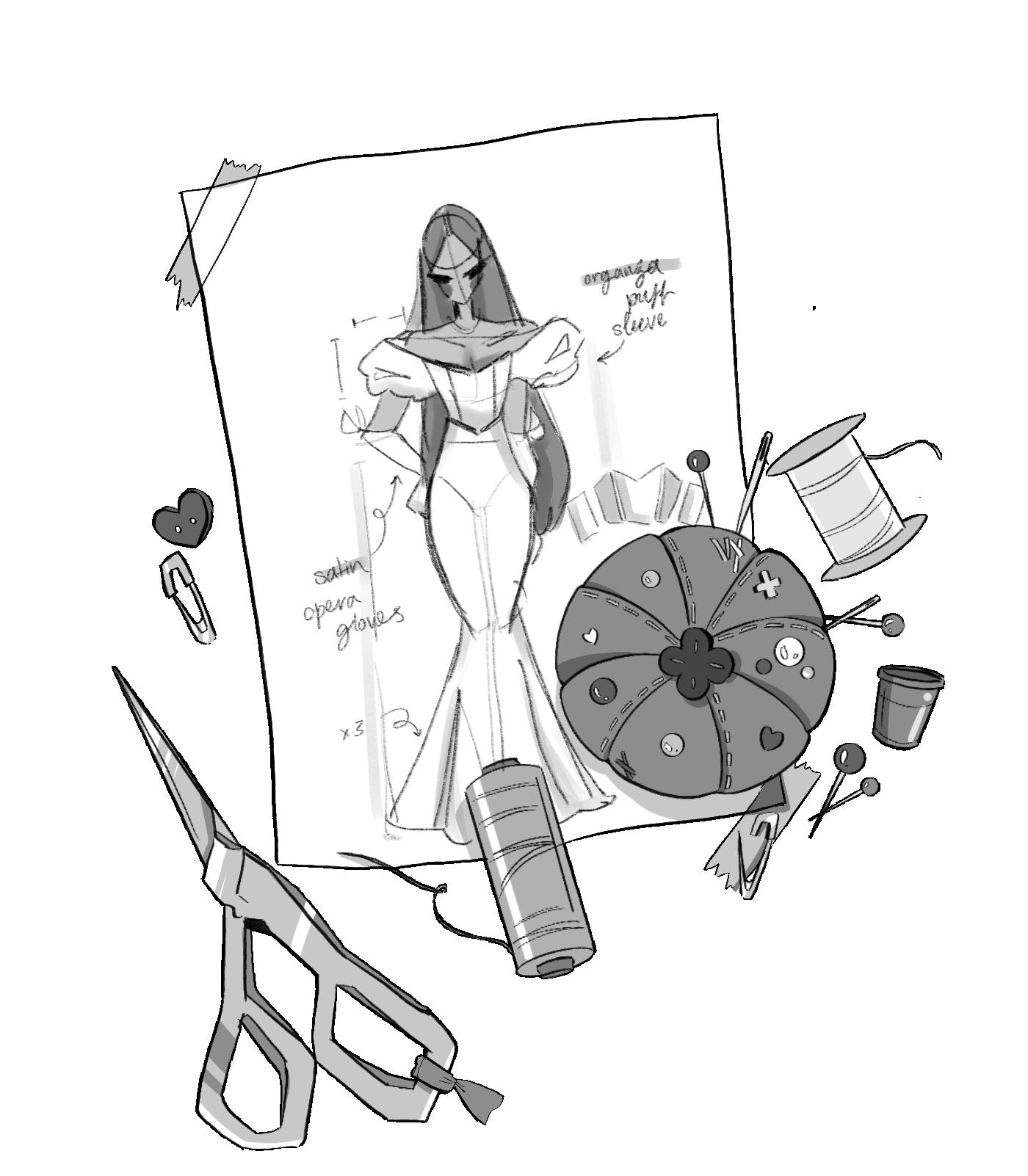 Dress forms sit around the room, half-clothed. Fabric samples and magazine cuttings are strewn about, accompanied by scissors and glue. Upbeat music plays in the background as students work on their mood boards—boards where people glue pieces of inspiration for a design—and draw out plans for outfits, chattering among themselves and bouncing ideas off each other. This is just a regular day in the Fashion Illustration class.