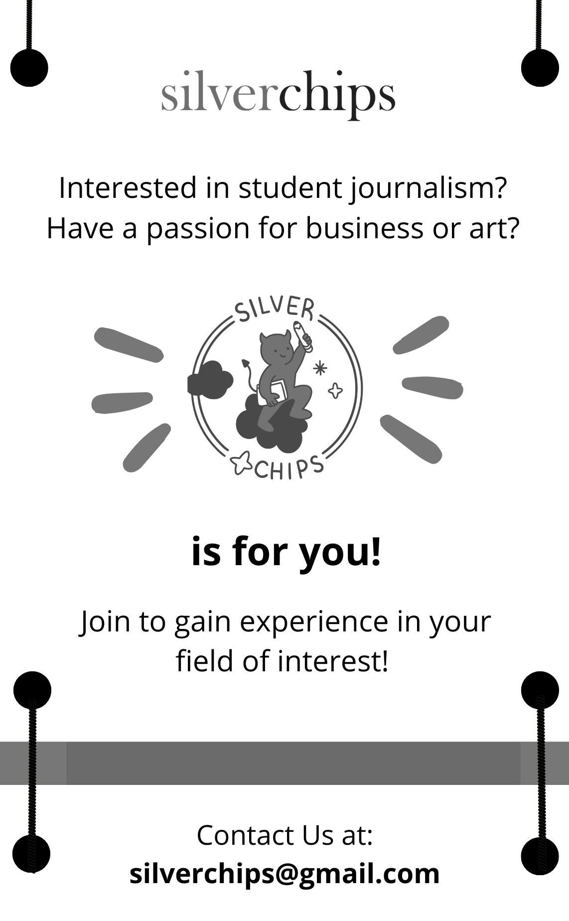 silverchips F3 Sports March 13, 2023 Contact Us at: silver.chips.print@gmail.com Join to gain experience in your field of interest! Interested in student journalism? Have a passion for business or art? silverchips
