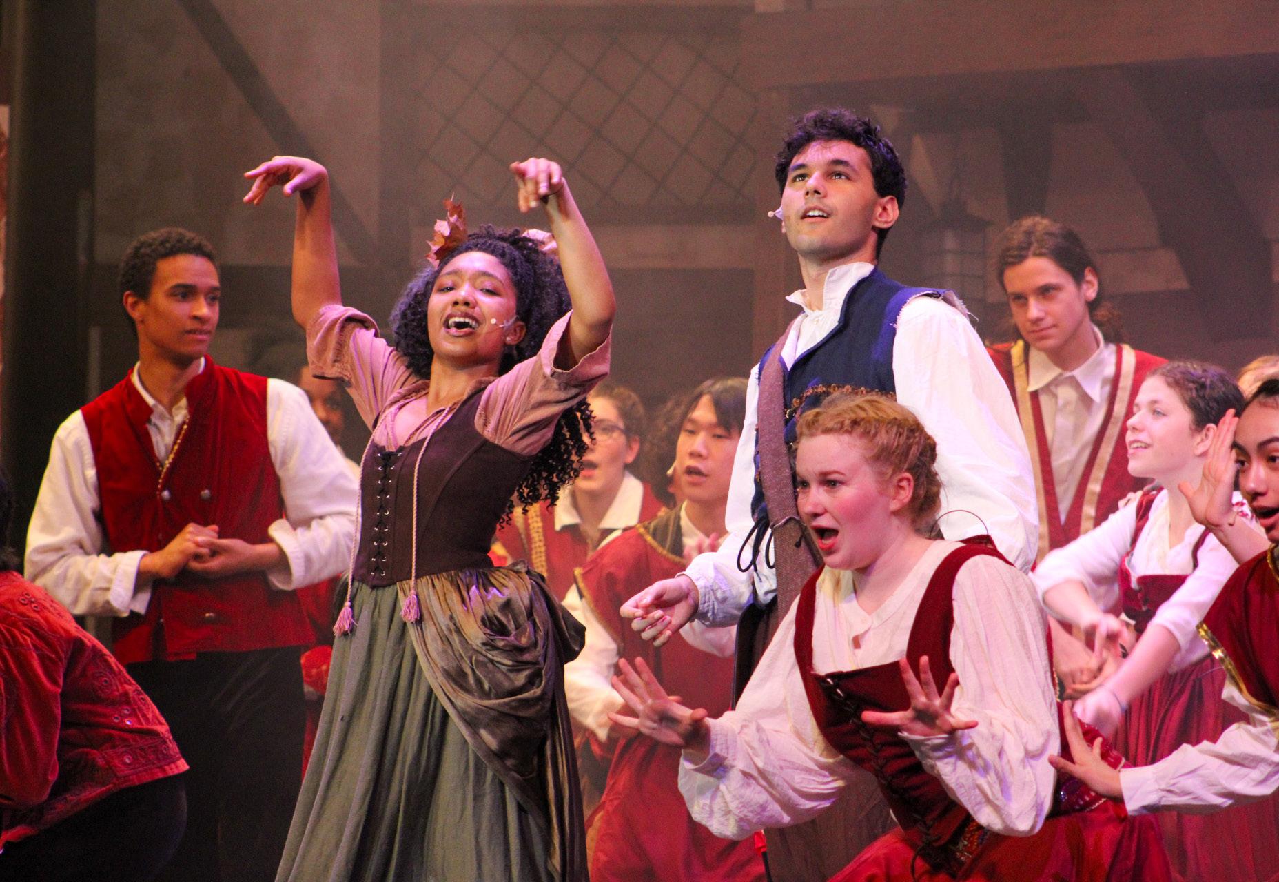 SOMETHING ROTTEN Serena Laney (Nostradamus, Red Cast), Navek Leonard (Nick, Red Cast) and the ensemble of Something Rotten perform “It’s A Musical” during Blair’s 2025 pring musical.